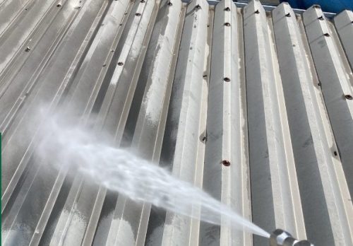 現地調査を行ったところ、外壁にはチョーキング現象が発生しており手で触れると白い粉が付着する状態でした。また、目地部分のシーリングには亀裂や硬化が見られ、一部では隙間が生じており、雨水が浸入する恐れがある状態でした。さらに、折半屋根についても、長年の紫外線や風雨の影響により全体的に色あせが進行し、接合部や端部を中心にサビの発生が確認されました。特にサビは放置すると腐食が進み、屋根材そのものの耐久性低下につながるため、早めの対策が必要な状況でした。