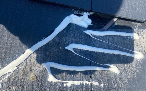 屋根材の割れやずれが多く見受けられたため、施工中は特に屋根の状態確認を丁寧に行いました。亀裂が入っている箇所については、一つひとつ状況を見極めながら適切な補修方法を選定し、雨水の浸入を防ぐため、隙間が残らないよう慎重に補修作業を行いました。また、屋根材のずれについては、無理に力を加えることで破損が広がらないよう注意しながら、位置を正確に調整し固定。
