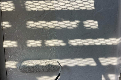 高圧洗浄の際には、ブルーシートでしっかりと養生を施し、水しぶきや汚れが飛散しないよう細心の注意を払って作業してくださっていました。ただ作業をこなすのではなく、周囲の状況を確認しながら慎重に進めてくださる姿を見て、ここまで気を配ってくれる会社なのだと心から信頼することができました。また、塗装工程に入ってからも、風向きや天候を確認しながら作業をされている様子が印象的でした。塗料の垂れや飛散が隣地へ及ばないよう、職人の皆様が声を掛け合いながら丁寧に進めてくださっている姿に、プロとしての責任感と誠実さを感じました。現場が狭い分、作業もしづらかったと思いますが嫌な顔ひとつせず、常に落ち着いて対応してくださったことに感謝の気持ちでいっぱいです。