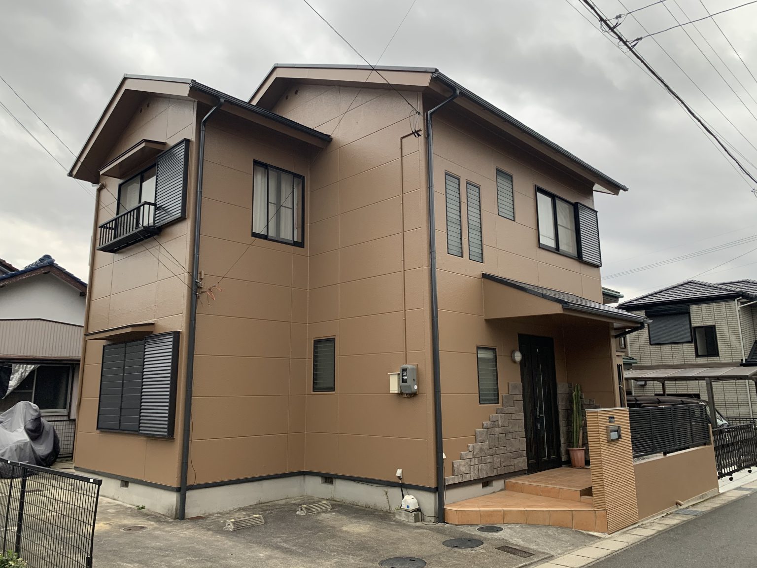 こちらのお宅はALCという外壁材でしたので、下地に防水用下地塗料を塗布し、丁寧に上塗り3回行いました。ALCは軽量気泡コンクリートパネルの略称で、気泡がたくさん空いています。その気泡から雨漏りを起こすケースが希にあります。その気泡がしっかり消えるように下地の選定と上塗りを行いました