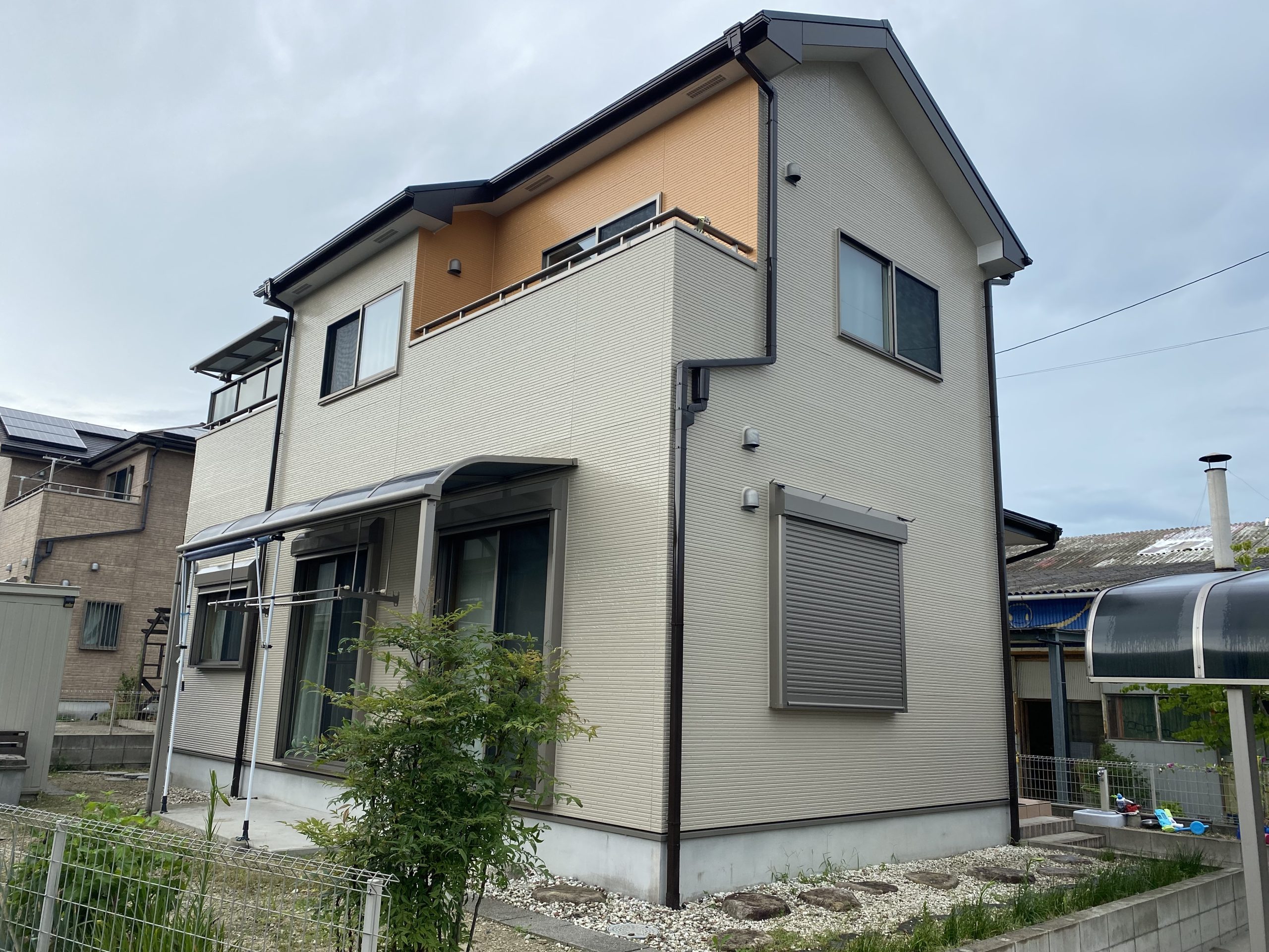 またツートン仕上げをご希望でしたので玄関とベランダ部分をアプリコット、そのほかをサンドベージュという色で仕上げました。