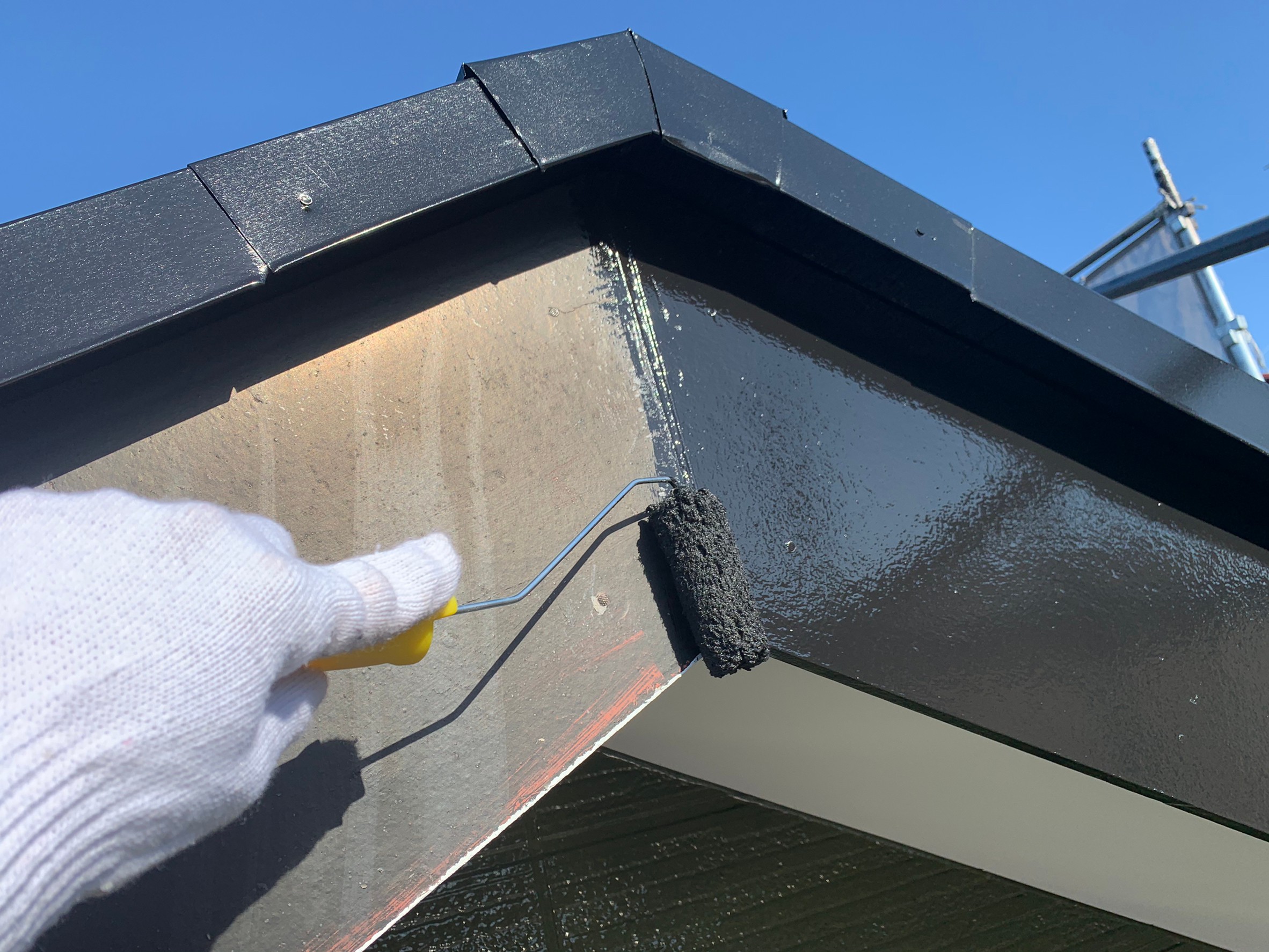 塗装作業も狭い面も丁寧に施工させて頂きました。塗装以外にも木部が痛んでる部分がありましたので、ガルバリウム鋼板を張る提案をさせて頂き、施工させて頂きました。