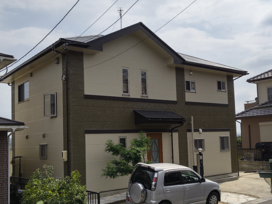 今回こちらのお宅は、外壁と屋根の塗装工事、ベランダの防水工事を行わせて頂きました。