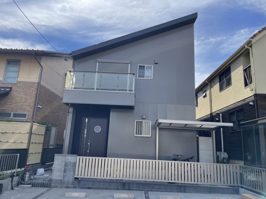 外壁から屋根まで全体的に色褪せが見られている状態で、破風板に打ってある釘が強風で抜けてしまい浮いた状態になってしまっていました。こちらに関しては火災保険を利用し修理してから外壁や屋根の塗装を行いました。