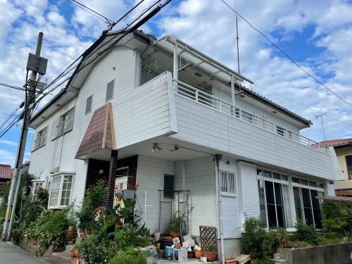 お客様のご要望としては外壁塗装のみ行いたいとのことでしたが、現地調査に伺った際に屋根の漆喰の劣化とベランダの床の防水が気になったのでそちらの御提案しお任せ頂きました。