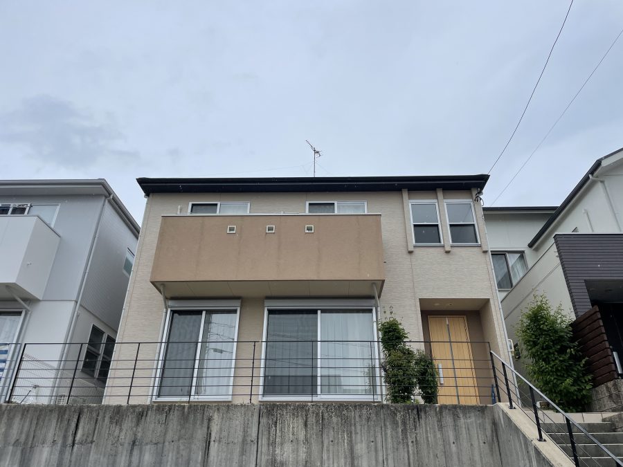 ジョリパット部分には、外壁のつなぎ目が劣化している部分が浮き出て目立ってしまっている状態でしたが、シーリング材をひび割れは箇所に刷り込んで補修をしました。サイディングの部分は、ひび割れが何ヶ所かに発生していましたので補修を行ってから塗装を行いました。またお客様が特に気にされていた箇所でもあるお風呂場に面している外壁材は、黒ずみやコケ・カビが発生していましたので高圧洗浄でしっかりと洗い流しました。お風呂はもともと湿気が溜まりやすい場所ということやお風呂場の窓から水滴がポタポタと流れることからカビなどが発生しやすくなりますので注意が必要です。