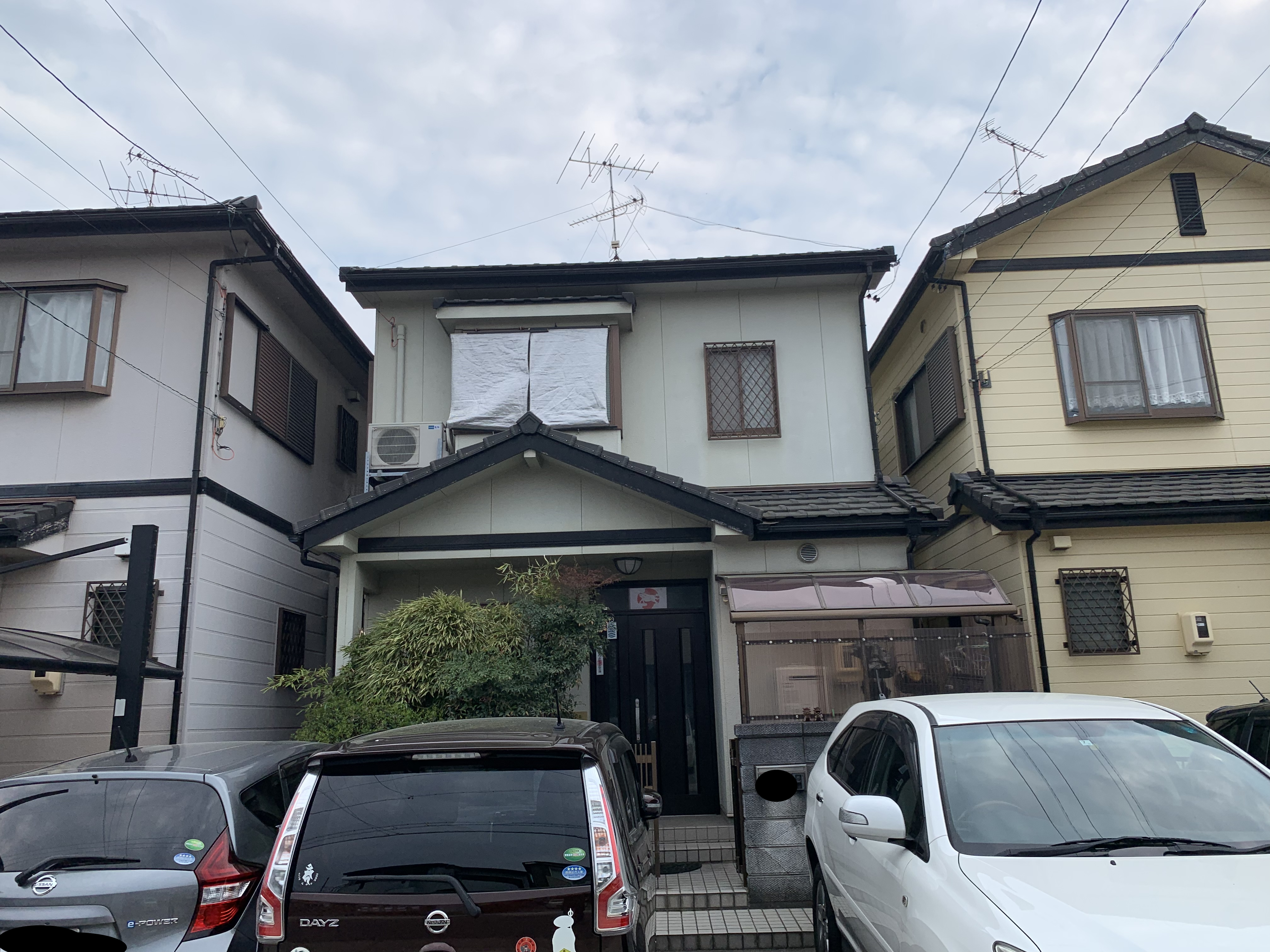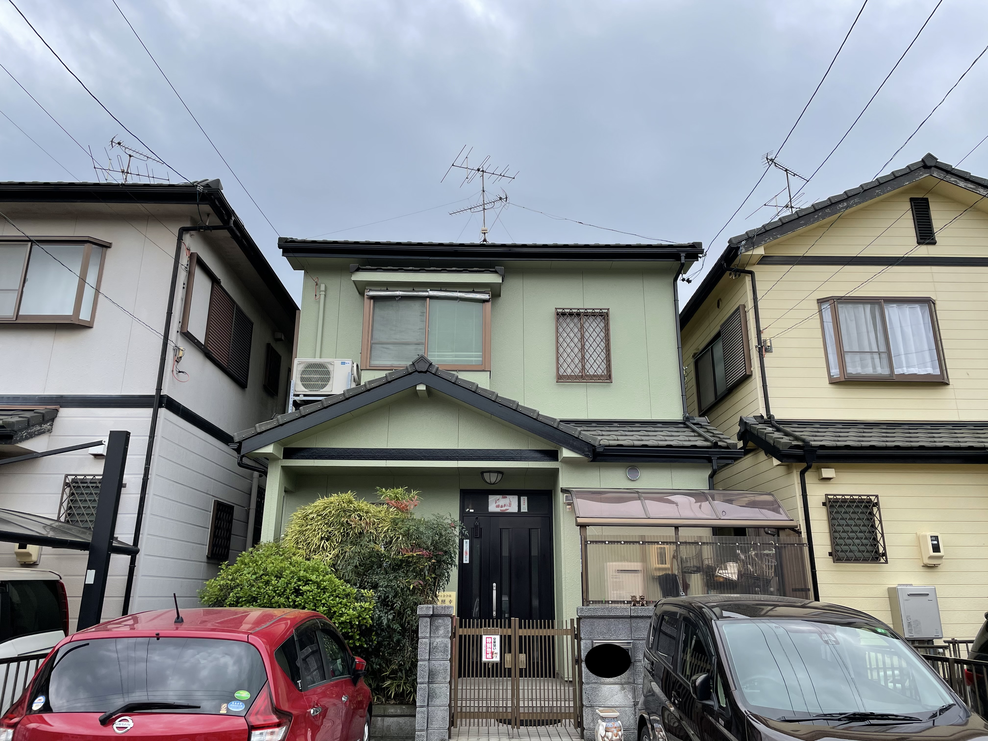 こちらのお宅は破風板の塗装が剥がれて施主様が気にしておられたので、旧塗膜をしっかりケレンして、下地調整材を塗布し強固な塗膜を形成することに注力して塗装工事を行いました。木部の塗装は膨れや剥がれが起きやすく、アフターのご依頼が来やすい部位になるので、そうならないように丁寧に作業しました。また瓦が経年劣化で釘が緩くなりでグラグラしていた為、釘をパッキンビスで全部交換させて頂きました。