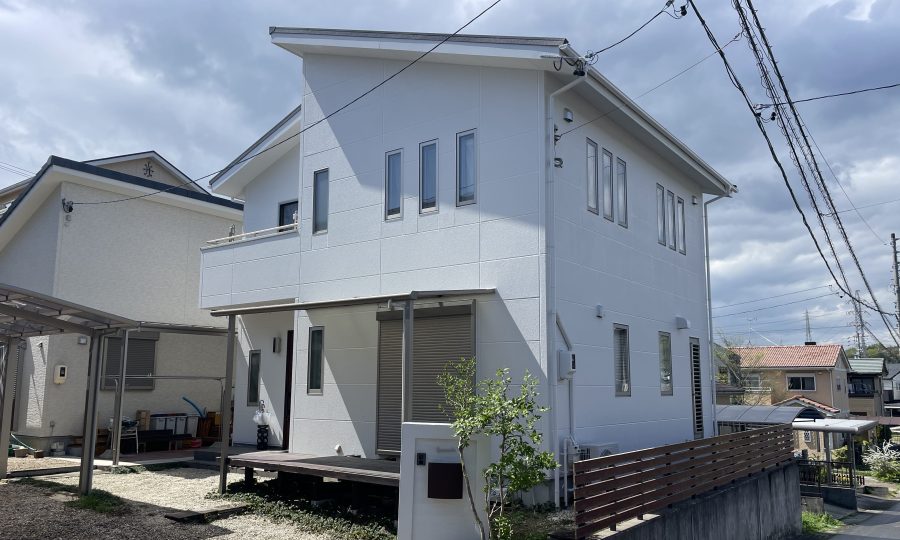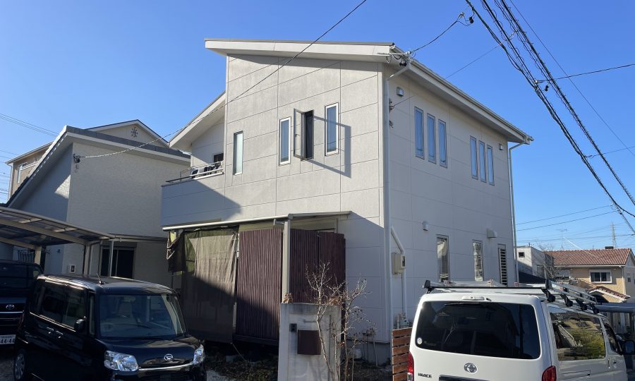 お客様の希望で、明るいイメージを実現するために白系の外壁としました。また、脆弱な屋根材をカバー工法で覆うことで、安心してお住まいいただける状態に変わりました。