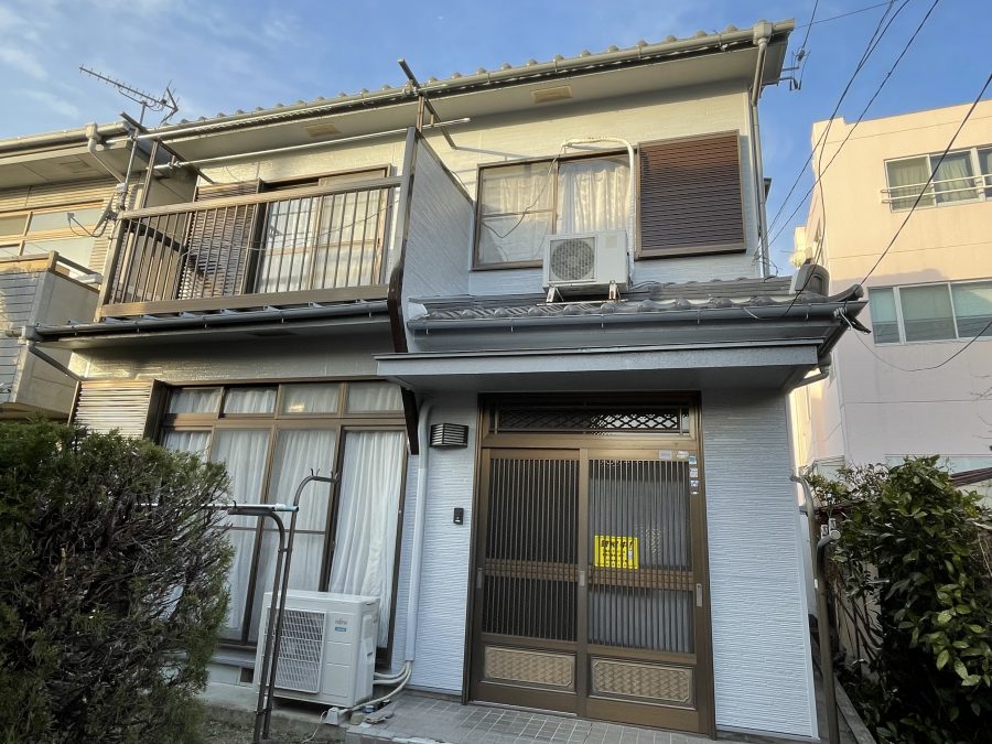 外壁はクリーム系の色が褪せた状態でしたが、施主様ご希望のライトグレーでクリーム系とは違う感じの明るさになりました。