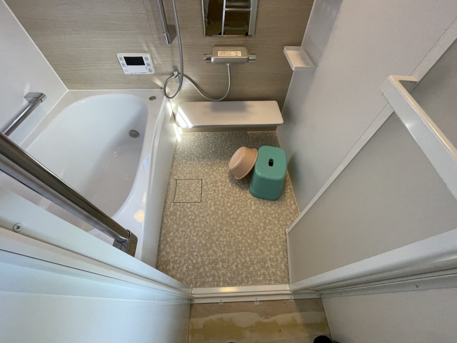 浴室は全面タイルでとても寒かった事や、換気扇も古く使っていない状態で、天井はアーチ形でタイル張りだったのでカビの掃除ができないことにお悩みで、新しい浴室に交換されました。浴室暖房や暖かい床に変わり、カビも発生しにくく掃除のしやすい浴室になり、手摺も付いたことで浴槽に入りやすくなりました。脱衣所も床やクロスを張替え洗濯機周りもきれいになりました。