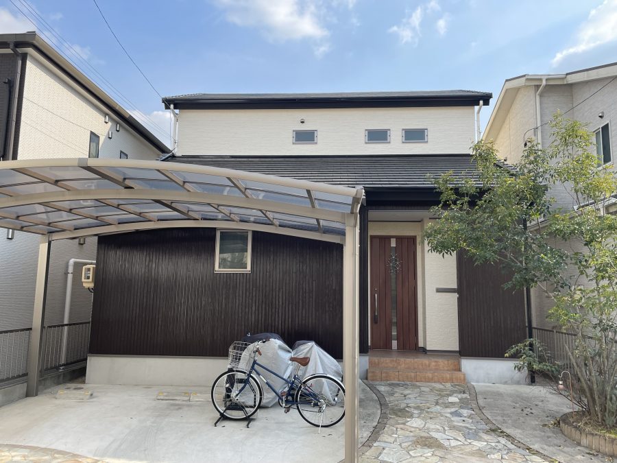 施工前が柄や模様があるサイデイングボードでしたので、色の打合せは何度か行い、単色仕上げのツートンで綺麗な仕上がりになりご近所様からも高評価でした。