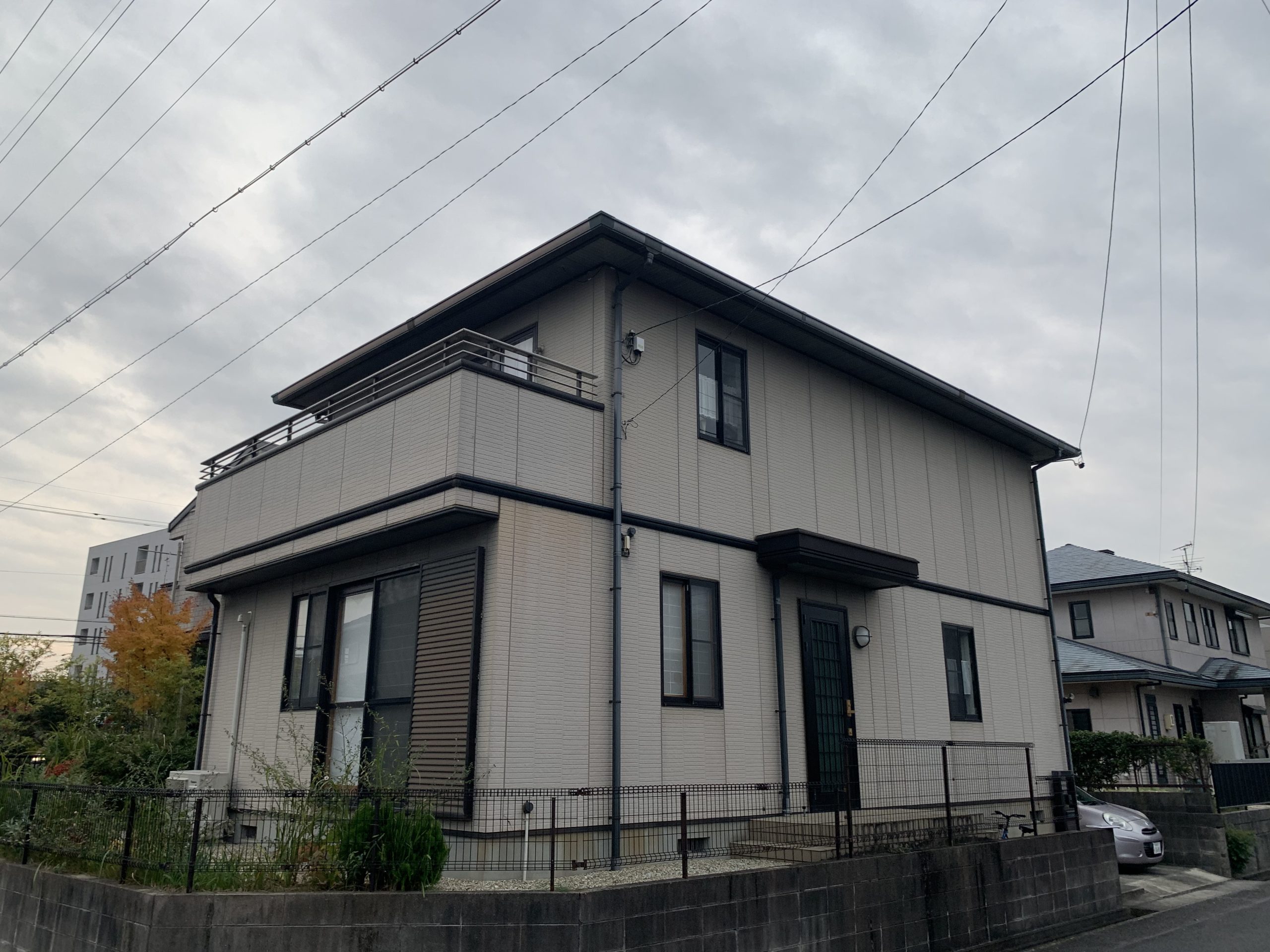 こちらのお宅はトヨタホームというハウスメーカーで建築された建物で、ハウスメーカーからもお見積りを取られて居たのですが、ご縁があり当社で外壁塗装・屋根塗装・ベランダ防水・ガスコンロ・レンジフードの交換と様々なリフォームを任せて頂く運びとなりました。工事中大変だったことは施工の時期がコロナウイルスの関係で工事の関係各所バタバタしていた為、工事毎の繋ぎの段取りに頭を使いました。やはり工事はお客様にとっても色々なことに気を遣う為、多かれ少なかれ気疲れしてしまいます。そのため工期を以下に短く且つ丁寧に作業をするかが大事になります。