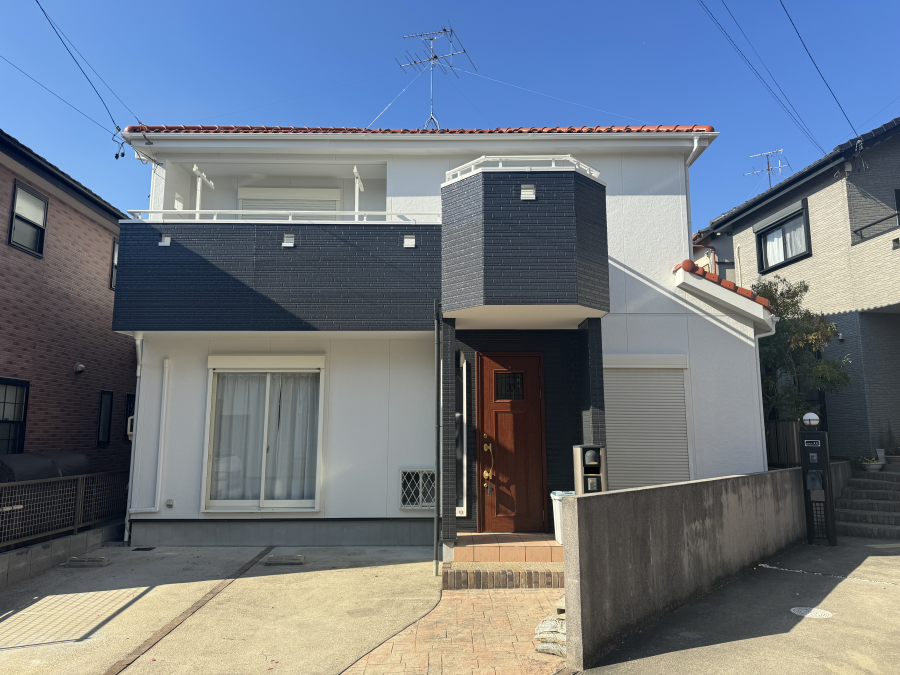 外壁を1階は黒系、2階は白系にモノトーンにリフォーム。屋根のオレンジとも調和が良く、満足しています。