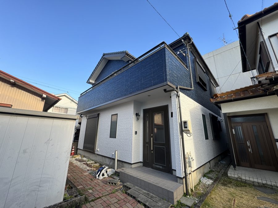 外壁も全然リフォーム前と違う色にして、玄関タイルや玄関ドアを交換して建物全体を一新しました。