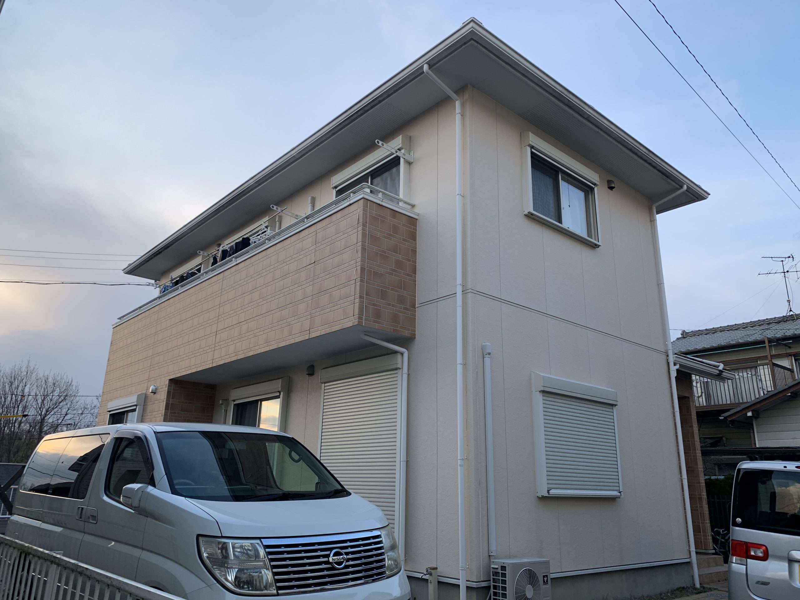 注文住宅で建築したお宅でお客様が既存の雰囲気を大切にしておられた為、クリヤー塗装でタイル調の部分を施工し、その他を今までの見た目と大きく変わらない形で色を塗りました。お客様も仕上がりにはご納得頂き喜んで頂けました。