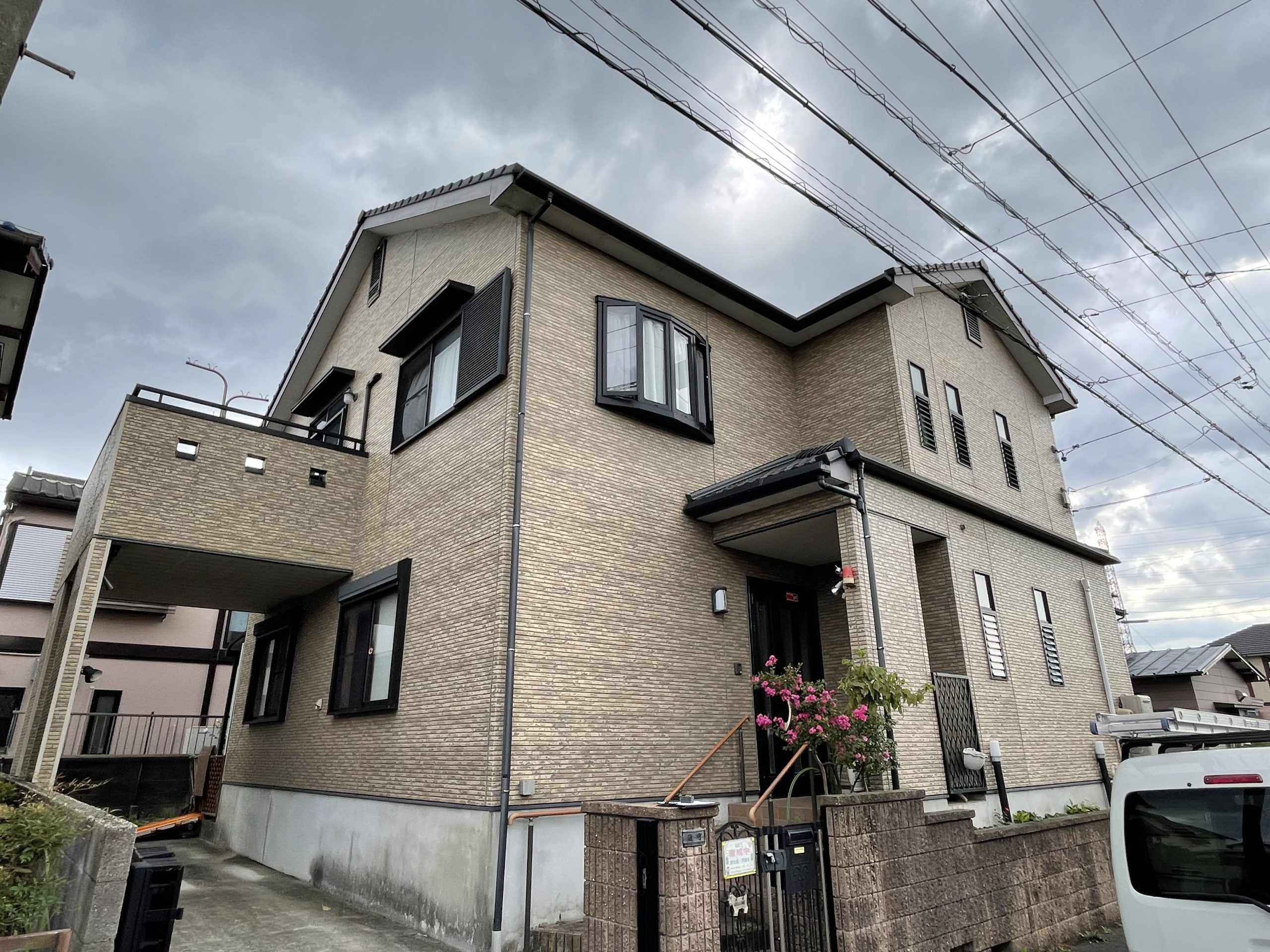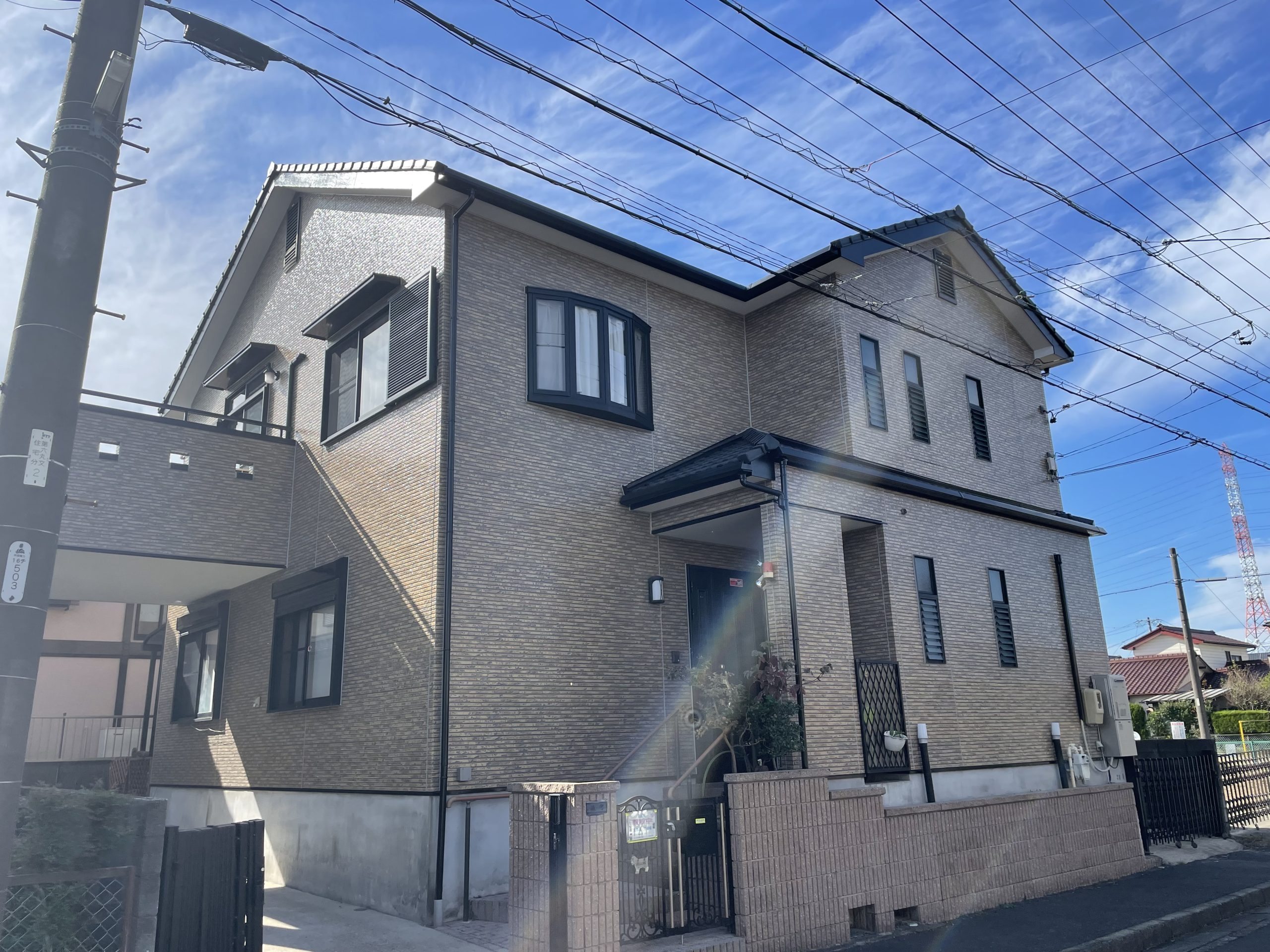 こちらのお宅は1Fにタイル調の外壁が使われていて、その風合いを生かす為に透明の塗料(クリヤー塗装)を採用しました。注文住宅でとして建築された建物でしたので。新築時の風合いを生かすことに拘って施工しました。お客様も丁寧に施工してくれたと喜んでくださいました。