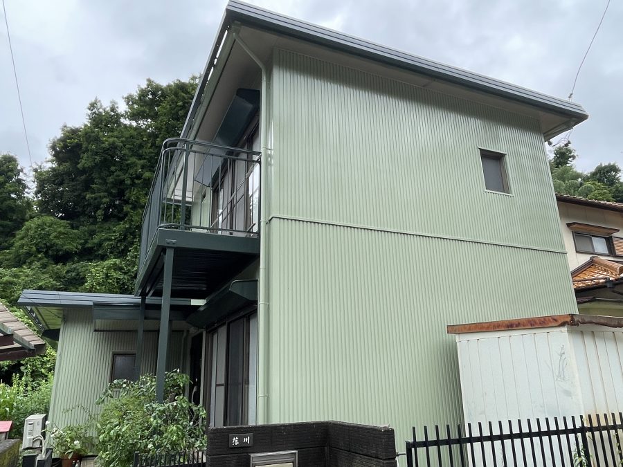 施工後、お客様にはグリーンを基調とした美しい外観をご確認いただき、ご満足いただきました。価格と施工内容についてもご納得いただき、ご契約いただいたことに感謝申し上げます。