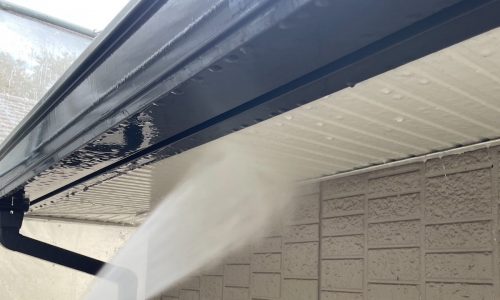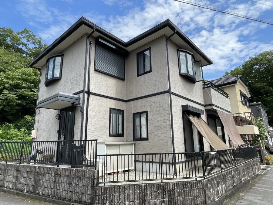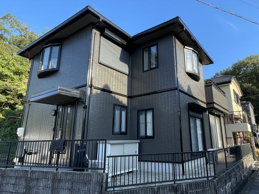 施工前よりも落ち着いた濃いめの色をお選びいただき、軒の色もシャイングレーに変更されたことで、全体の雰囲気がさらに洗練された印象に生まれ変わりました。
