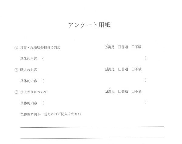 また、リメイクホームさんのアフターケアに対する姿勢にも感動しました。施工完了後にしっかりと最終点検を行い、今後のメンテナンスについてのアドバイスまでいただけました。
