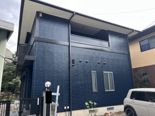 グレーからナスコンに変えて、とてもシックに仕上がりました。付帯をダークグレーにして落ち着いた外観に仕上がりました。