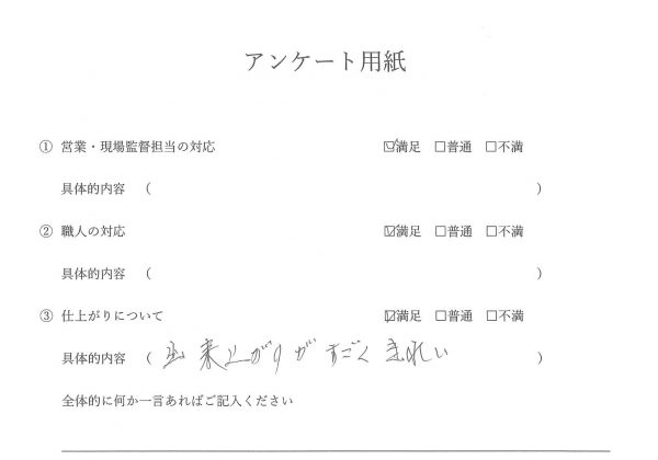 今回の工事を通じて、リメイクホームさんの丁寧な対応と確かな技術力に感銘を受けました。また何か家のことで困ったことがあれば、ぜひリメイクホームさんにお願いしたいと思います。本当にありがとうございました。