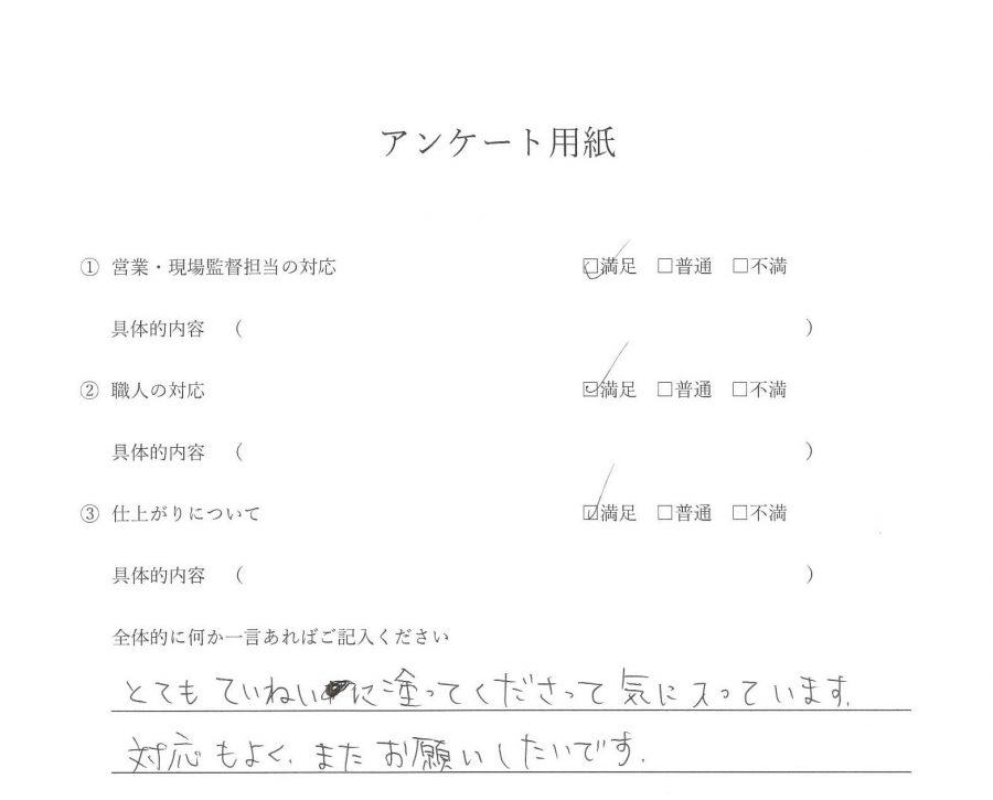 施工中は周囲への配慮も行き届いており、とても好印象でした。施工後の片付けもしっかりとしていただきました。