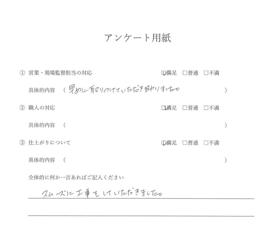 そんな中で、リメイクホームに相談することに決めました。リメイクホームのウェブサイトを見て、信頼できる施工業者であることがわかり、電話での問い合わせをしました。担当者の方はとても親切で、私たちの希望に応じて迅速に対応してくださり、交換の日程を調整してもらいました。このスピーディーな対応に、最初から安心感を持ちました。