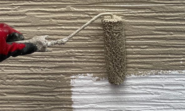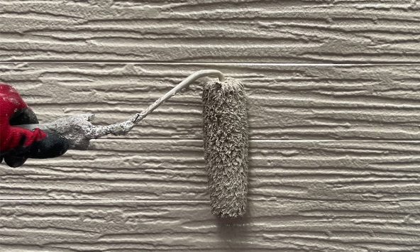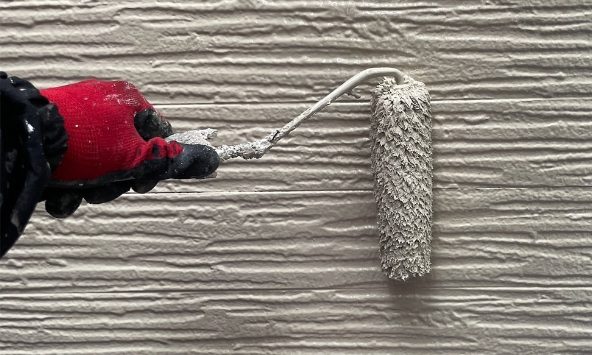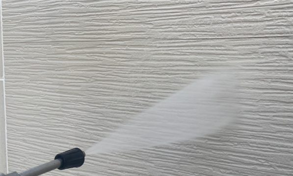 外壁塗装工事では、高圧洗浄にてコケや汚れをしっかりと除去した後、劣化状況に応じた下地処理を丁寧に行いました。