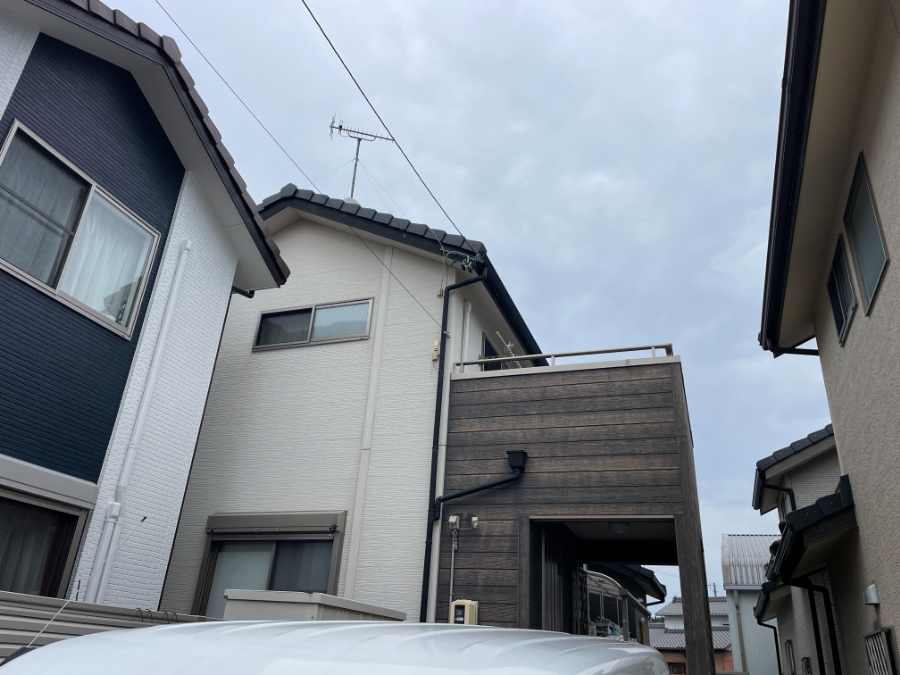 屋根は瓦屋根のため大きな破損はありませんでしたが、外壁との取り合いや付帯部の劣化が進んでいる状態でした。
