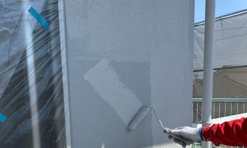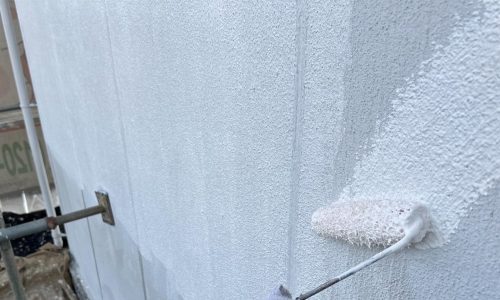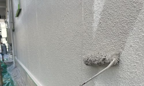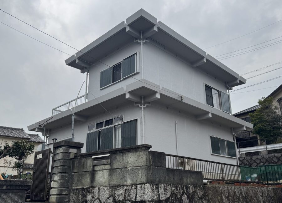 外壁のひび割れ補修や下地処理を行ったうえで、耐久性に優れた「ナノコンポジットW(ホワイト)」を使用し、丁寧に塗り重ねました。