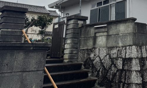 まず外壁全体を高圧洗浄し、長年蓄積した汚れや旧塗膜、苔を丁寧に除去しました。