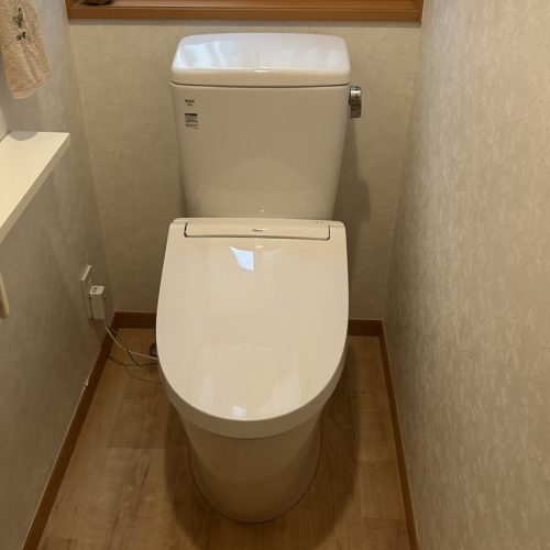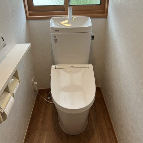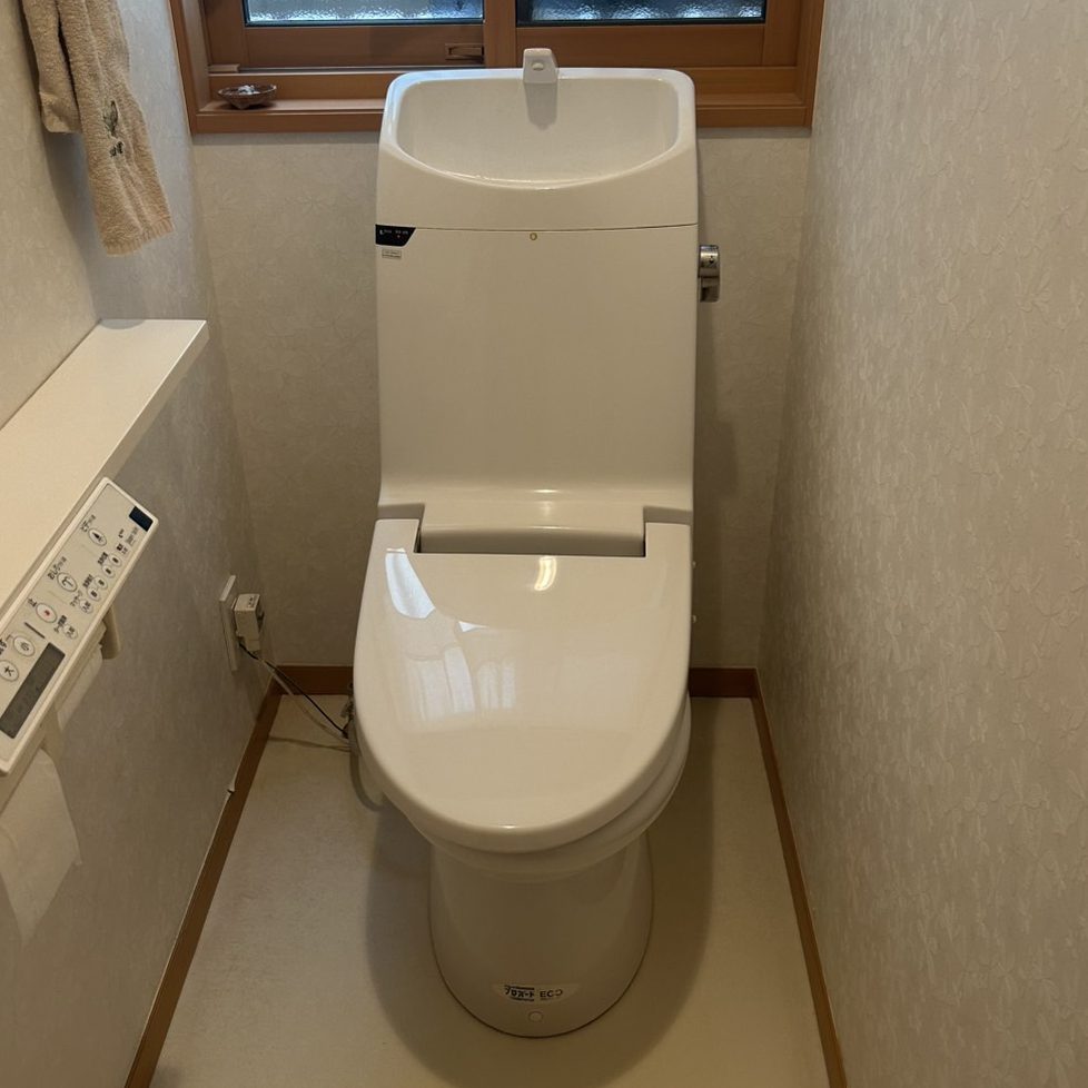 そして今回特に嬉しかったのが、1Fと2Fのトイレ交換です。1Fは手洗いなし、2Fは手洗いありのアメージュを選びましたが、どちらもスッキリとしたデザインでお掃除がしやすく、見た目も機能面も大満足です。シャワートイレも座り心地が柔らかく、操作も分かりやすく、来客にも安心して使っていただけると思いました。特に1Fトイレは使用頻度が高いので、清潔さを保ちやすくなったことがとても嬉しいです。