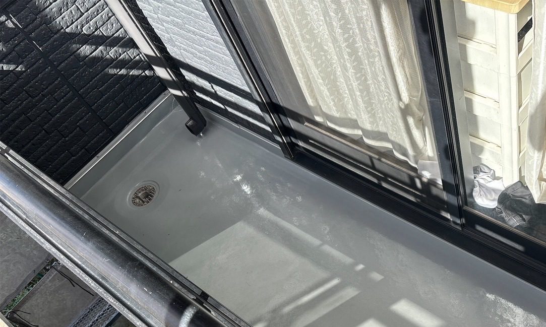 ベランダのトップコートも艶が戻り、防水層の保護効果が明確に向上。外観全体がリフレッシュされた印象です。
