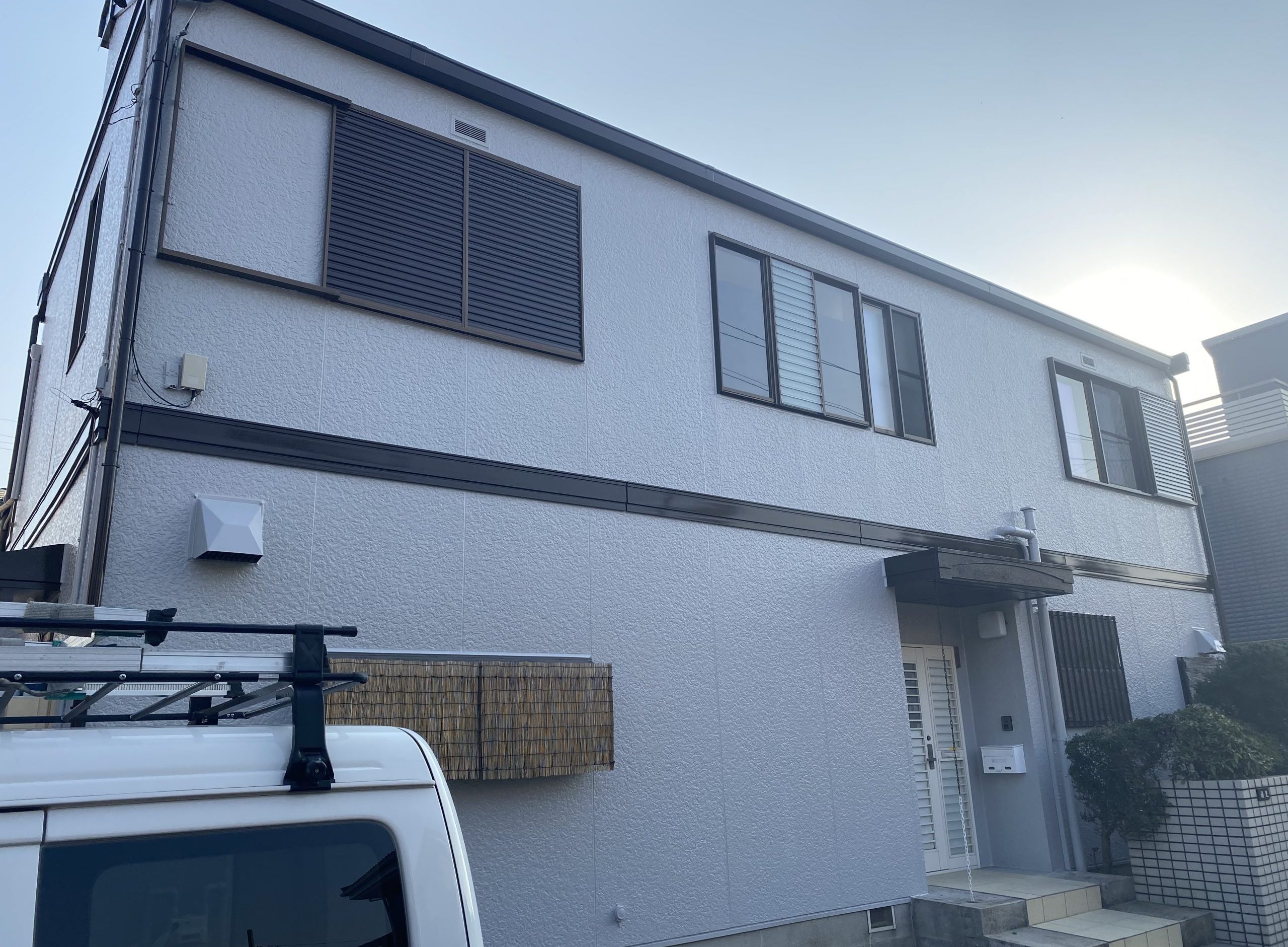 施工前は全体的にくすみと色あせがありましたが、外壁をライトグレー、屋根をブラックにすることで、明るさと引き締まった印象を両立した仕上がりに。