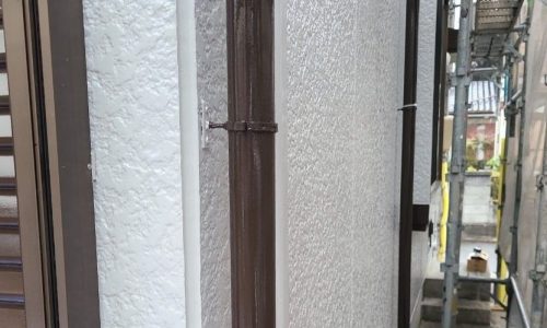 雨水溝の剥がれた塗膜はケレンで除去し、さび止めを厚く塗ることで耐久性を確保しました。各工程で職人が塗膜厚や乾燥時間を管理し、仕上がりの美しさと品質の両立を意識して施工しました。