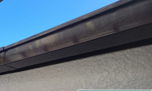 また、付属の折半屋根の塗装では、雨水が流れる溝部分の旧塗膜をしっかり除去し、さび止めを厚く塗ることで再発を防止しました。さらに、金属部の密着性を高める下地処理を行い、耐久性を重視した仕上がりを心がけました。
