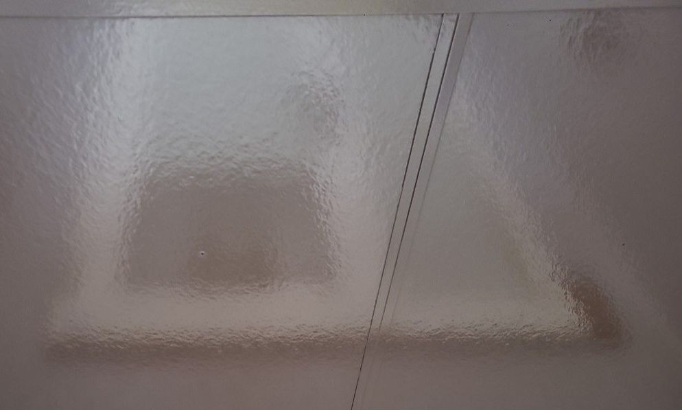 また、雨水が流れる溝の塗膜がはがれ、水はけが悪くなっている箇所もありました。全体的に経年劣化が進んでおり、外観・防水ともにリフォームが必要な状態でした。