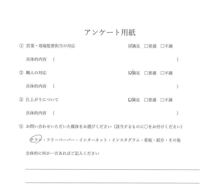 工事が始まってからも、毎日職人さんが明るく挨拶してくださり、作業の進み具合や予定をきちんと伝えてくださったので、不安を感じることなく過ごせました。天候の影響を受ける日もありましたが、常に安全に、そして丁寧に作業してくださっている姿に感動しました。