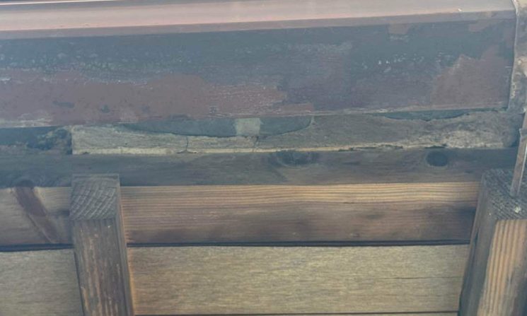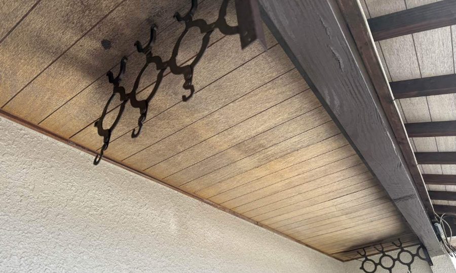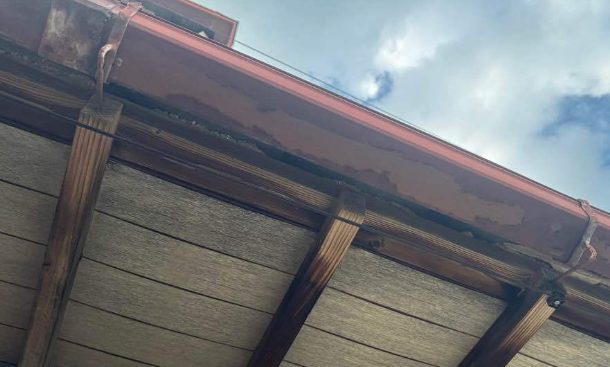 屋根瓦自体には大きな割れなどは見られませんでしたが、付帯部分である漆喰や軒裏は劣化が進んでおり、このまま放置すると雨水の侵入などにつながる可能性があるため、補修・張替が必要な状態でした。