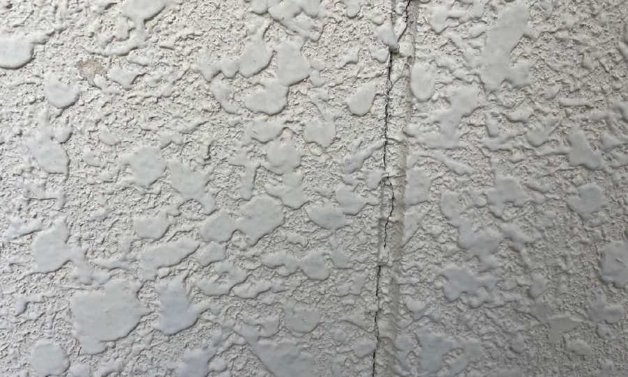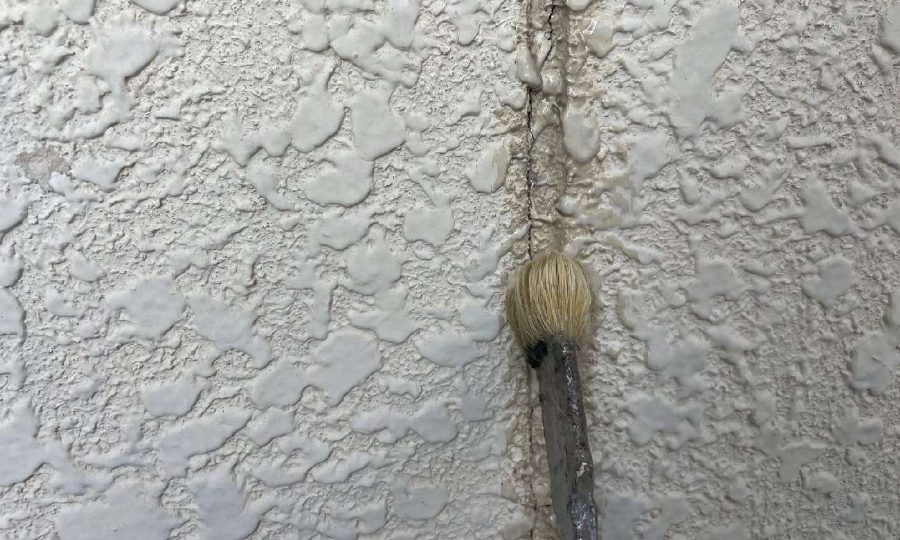 現地調査では、モルタル外壁特有のひび割れが複数箇所で確認でき、塗膜の劣化や色あせも進行している状態でした。