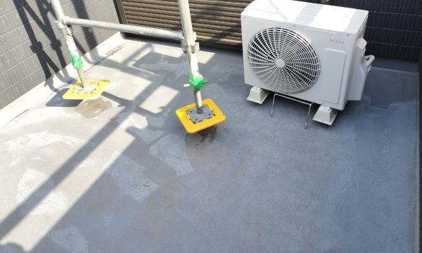 外壁塗装は、ダークグレーのシックなカラーで統一しました。屋根は、明るい色合いで反射性能と耐久性を兼ね備えた仕上がりに。さらに、ベランダの防水工事ではFRP防水(1プライ)を施工し、雨漏りの不安を一掃しました。施工中は安全面に十分配慮し、近隣への影響を最小限に抑えるよう努めました。