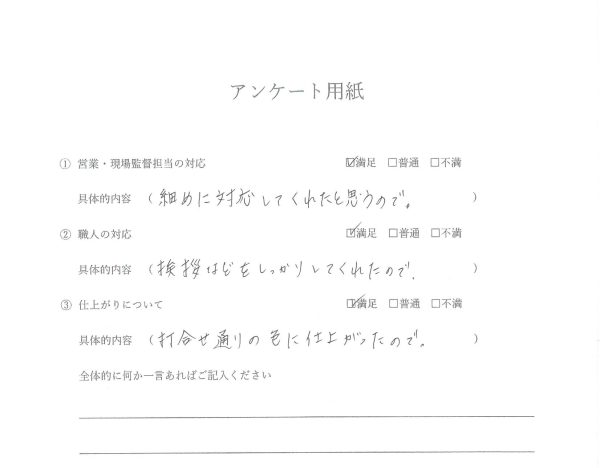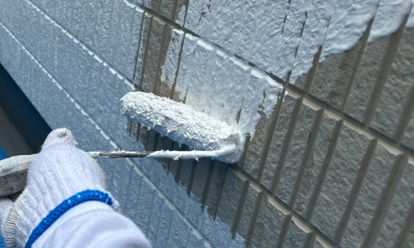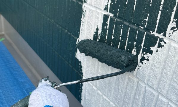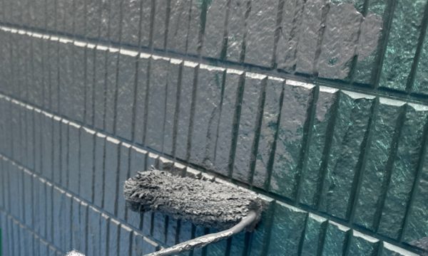弊社標準の4回塗装工程を厳守し、耐久性を高めました。また、塗装できないタイル部分については、境界部分の仕上がりに特に注意を払い、美しい見切りとなるよう工夫しました。使用塗料は3分艶仕上げのため、上品な光沢感を実現しました。