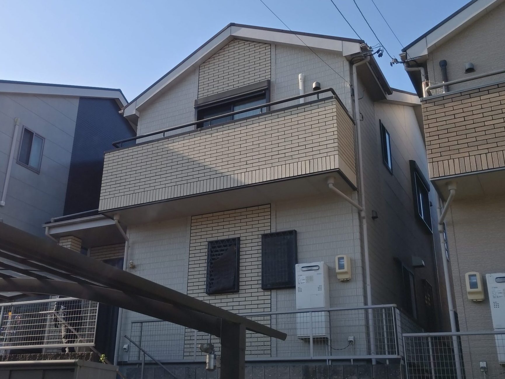 ビフォーは、外壁は色褪せと汚れが目立ち、屋根も退色が進行していました。全体的にメンテナンスの必要性が感じられる状態でした。