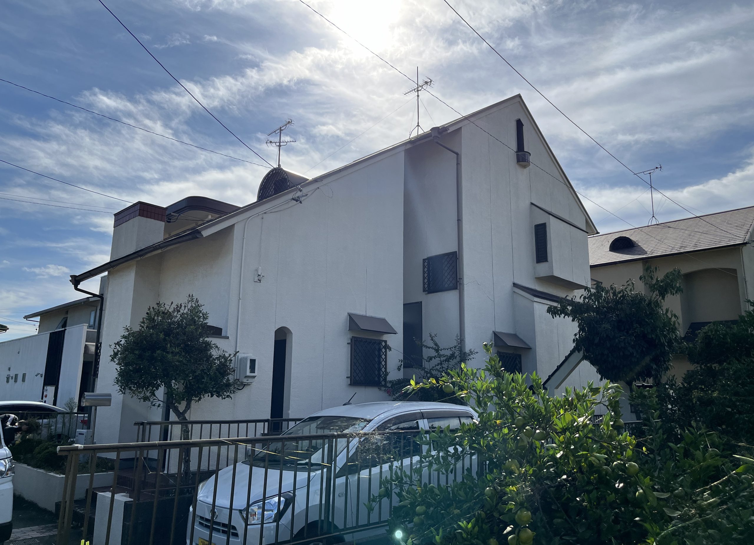 工事を依頼されたきっかけは、以前からのお付き合いのある顧客様からの紹介でした。お客様は自宅の外壁と屋根の劣化が進んでいることを気にされており、塗装によるリフォームを検討されていました。