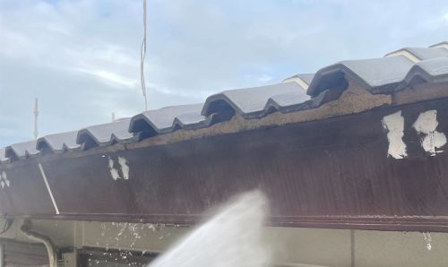 お客様のお宅は築36年が経過しており、外壁には経年劣化による色あせや汚れの付着が目立っていました。特に日当たりの良い南側の外壁は、紫外線の影響でチョーキング現象(触ると白い粉が手につく状態)が発生しており、防水機能の低下が懸念されました。また、シーリング部分の劣化も進んでおり、ひび割れや剥がれが確認されました。屋根に関しては、カラーベストの表面に苔やカビが発生しており防水性の低下が見受けられました。雨漏りの兆候はなかったものの、早めのメンテナンスが推奨される状態でした。