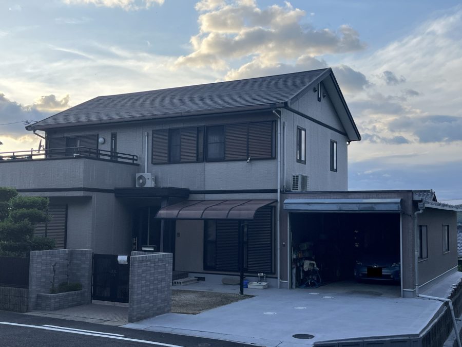 お客様は、築21年が経過し外壁と屋根の劣化が目立ってきたため、弊社へご相談をいただきました。お打ち合わせでは、まず建物の状態を詳しく点検し、最適な施工プランをご提案致しました。お客様は、長持ちする塗料を選びたいがコストも抑えたい、現在の雰囲気を大きく変えず落ち着いた印象にしたい、というご希望と過去の施工実績や対応の良さを重視しておられました。そこで、外壁には高耐久のKFスーパーSi(サンドベージュ)屋根には遮熱効果のある快適サーモSi(ダークグレー)、ベランダの防水にはウレタン防水の施工し、雨漏りのリスクを防ぐ対策をご提案させて頂きお客様は納得されご契約を頂きました。
