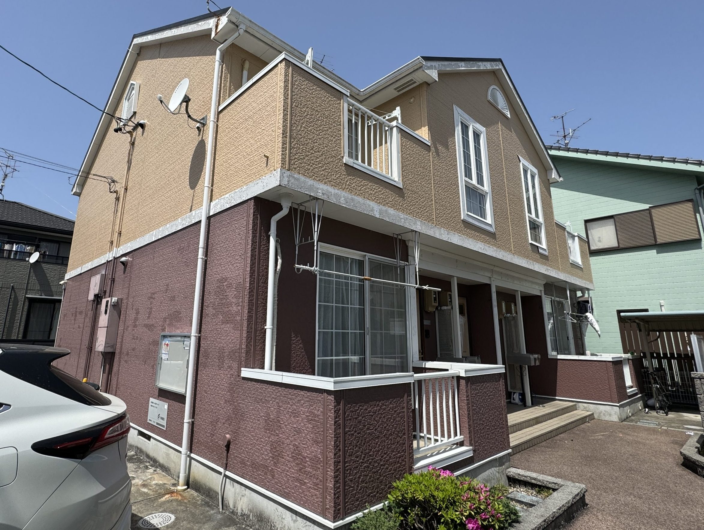 K様ご経営の賃貸アパートは、築14年を迎え、外壁や屋根の色あせや汚れが気になり、塗装の必要性を感じてお問い合わせくださいました。特に雨の日には外壁の汚れが目立つことがあり、屋根材の劣化も進んでいることから、早めのメンテナンスを検討されていました。