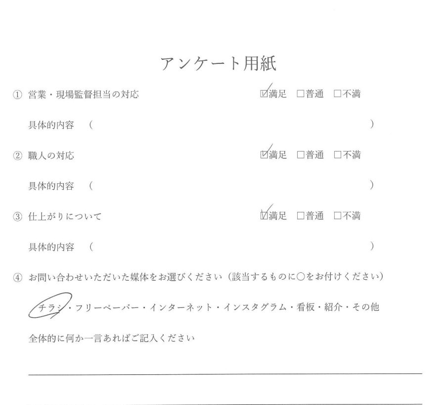 工事が始まってからも、職人さんたちの礼儀正しい態度や、毎日の丁寧な作業に安心感がありました。天候に左右されやすい工程でしたが、進捗状況や日程の調整もこまめにご連絡いただき信頼してお任せできました。
