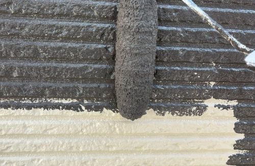 アーバントーンは吹き付けによる施工となるため、仕上がりの美しさや周囲への影響を考慮し、天候には特に注意を払いました。風が強い日は塗料の飛散やムラの原因となる可能性があるため、そういった日は無理に作業を進めず、天候の落ち着いた日を選んで施工を行いました。近隣への配慮はもちろんのこと、均一で美しい仕上がりを実現するためにも、職人と連携を取りながら慎重に進めました。