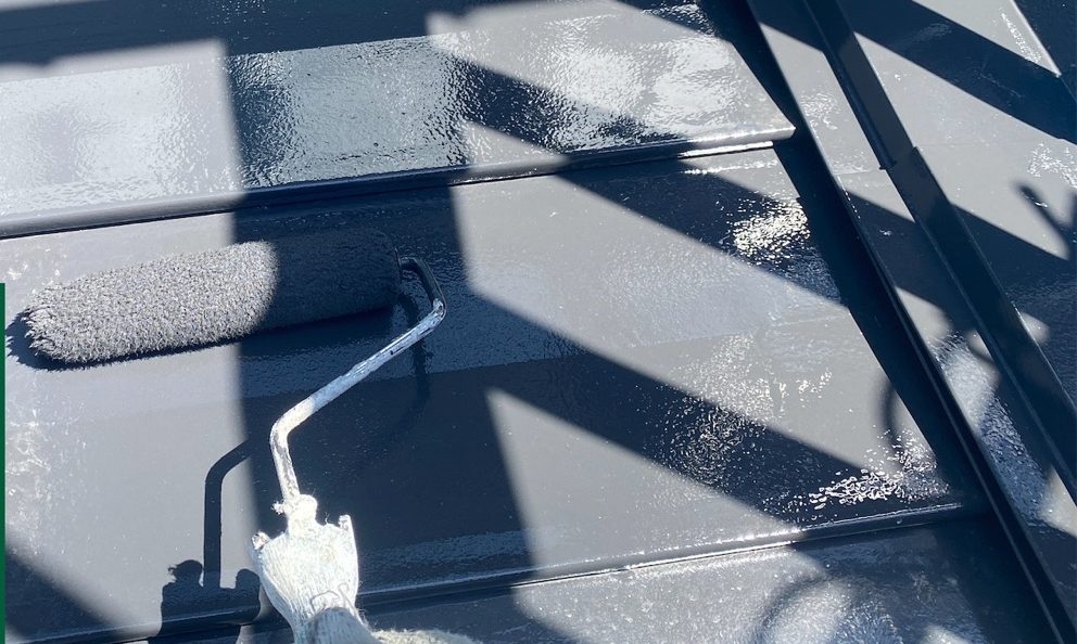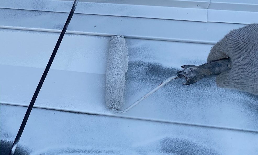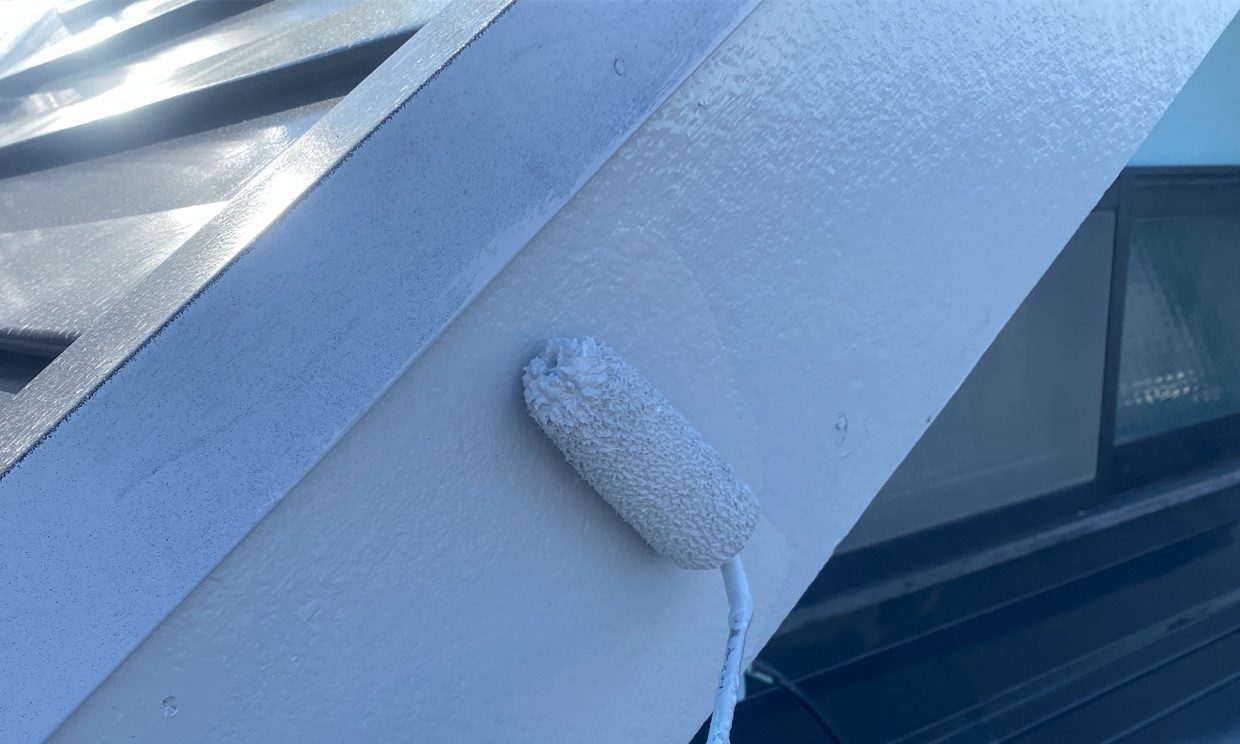 屋根はステンレス製で、経年による劣化が見受けられましたので、まずは錆止めを丁寧に下塗りし、その上からしっかりと塗装を施しました。耐久性を高めるため、塗膜の密着を意識して作業を行っています。